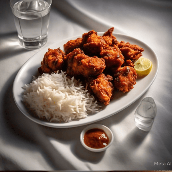 Chicken 65 - Boneless is made by marinating tender boneless chicken cubes in a zesty mix of red chili powder, turmeric, ginger-garlic paste, garam masala, and a splash of lemon juice or yogurt for tanginess. The marinated chicken is then coated with a light batter of cornstarch and rice flour, deep-fried until crispy and golden, and tossed with curry leaves, green chilies, and a hint of soy sauce for an extra kick. The result is a succulent, spicy, and crunchy treat with a vibrant red hue.