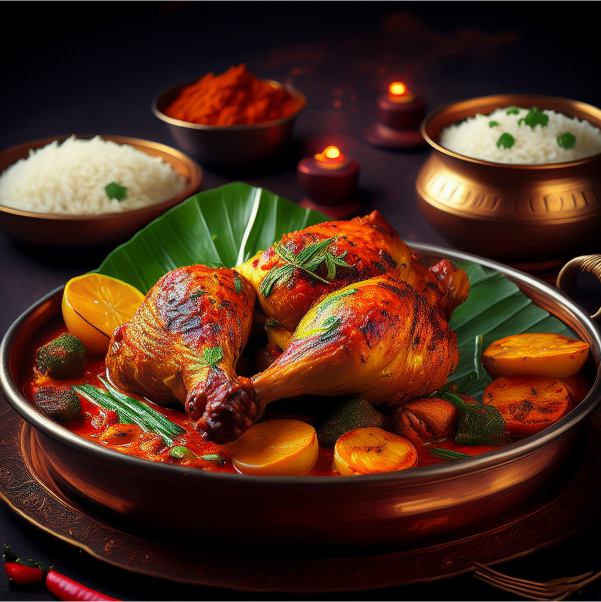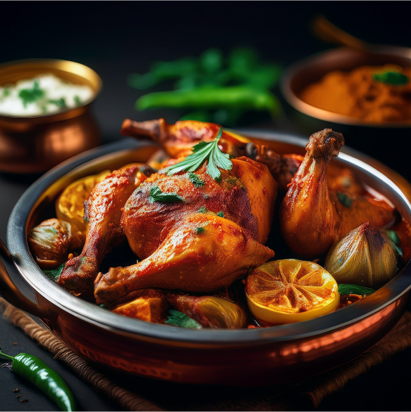 Chicken Roast is prepared by marinating juicy chicken pieces in a robust blend of spices including red chili powder, turmeric, cumin, coriander, and garam masala, along with fresh ginger, garlic, and a splash of lemon juice for tanginess. The marinated chicken is then slow-roasted—either in an oven or on a stovetop with a touch of oil—until it develops a golden-brown crust and a smoky aroma. The result is tender, flavorful chicken with a crispy exterior that locks in the juices.